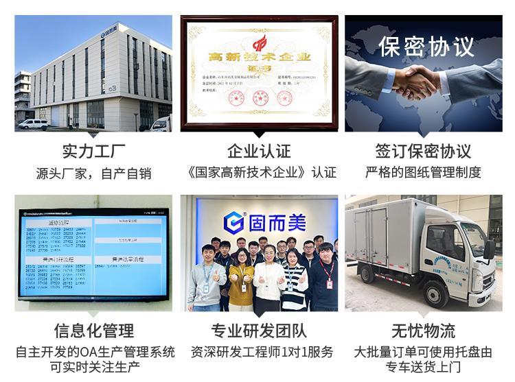 山東固而美金屬制品有限公司一直致力于為客戶提供更好的外殼解決方案,公司有專業的設計團隊,獲得國家專利共39項,實用新型專利35項,外觀專利3項,發明專利1項,產品均通過ISO9001質量體系認證和ISO14001環境管理體系認證,有成熟完善的生產線,作為專業的鈑金加工廠,企業有三萬件產品的研發經驗。廠家有專業技術工人,含過程檢和完檢兩道質檢工序,全天候工程人員在線為您提供技術支持,各種金屬外殼、標準機箱、標準機柜、外殼定制等您咨詢~